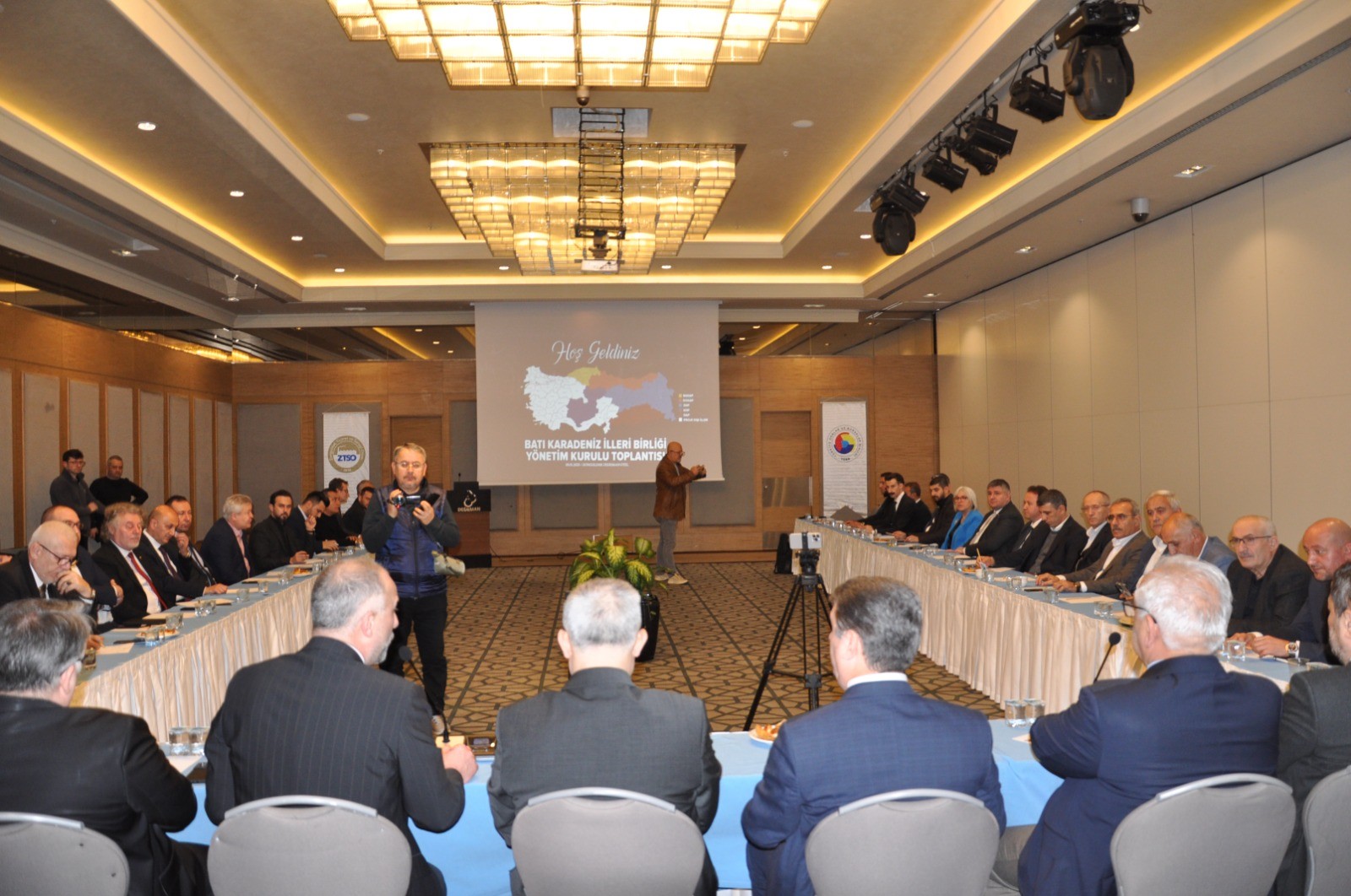 Batı Karadeniz İlleri Birliği Yönetim Kurulu toplantısı, Zonguldak Ticaret ve Sanayi Odası (ZTSO) koordinasyonunda, Vali vekili, Rektör, belediye başkanları, ticaret ve sanayi odası başkanları, diğer meslek odaları temsilcileri, iş insanları, Batı Karadeniz Kalkınma Ajansı (BAKKA) ve Kuzey Anadolu Kalkınma Ajansı (KUZKA) temsilcilerinin katılımıyla Zonguldak Dedeman Otel’de düzenlendi.