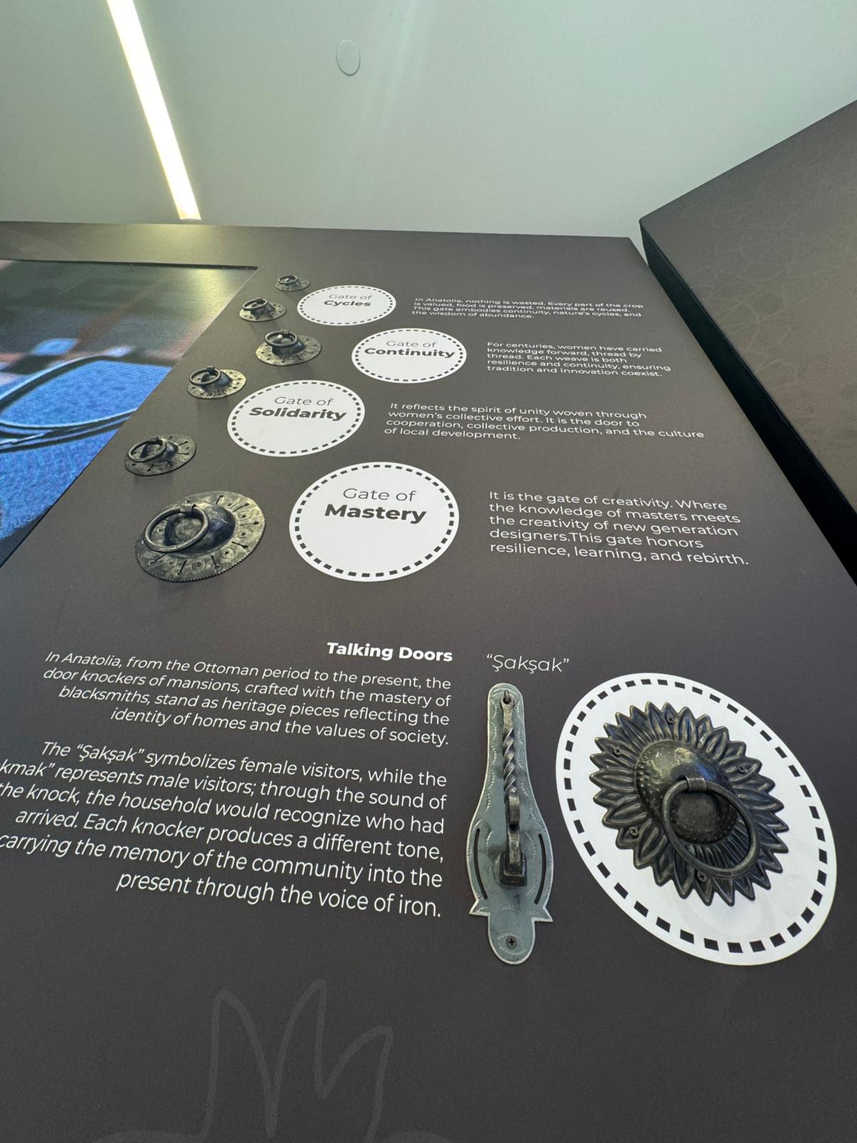 Sergide, Anadolu’nun dört bir yanından getirilen kültürel miras eserleriyle birlikte, bölgemizi temsilen seçilen değerler de uluslararası vitrine taşındı. Bu kapsamda, Safranbolu’nun geleneksel ustalık mirası olan ve serginin temasına uygun olarak hazırlanan kapı tokmakları ziyaretçilerin yoğun ilgisini çekti. Kadın ve erkek misafirler için farklı sesler ve formlarda üretilen bu tokmaklar, kültürümüzün inceliklerini ve misafirperverliğini simgeleyen nadide eserler arasında yer aldı.